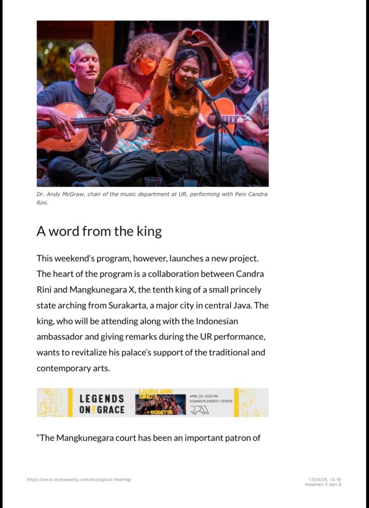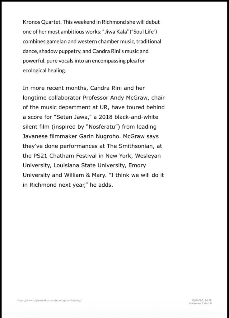 “Jiwa Kala” at Camp Concert Hall, University of Richmond’s Modlin Center at 7.30p.m on Sunday, April 19.